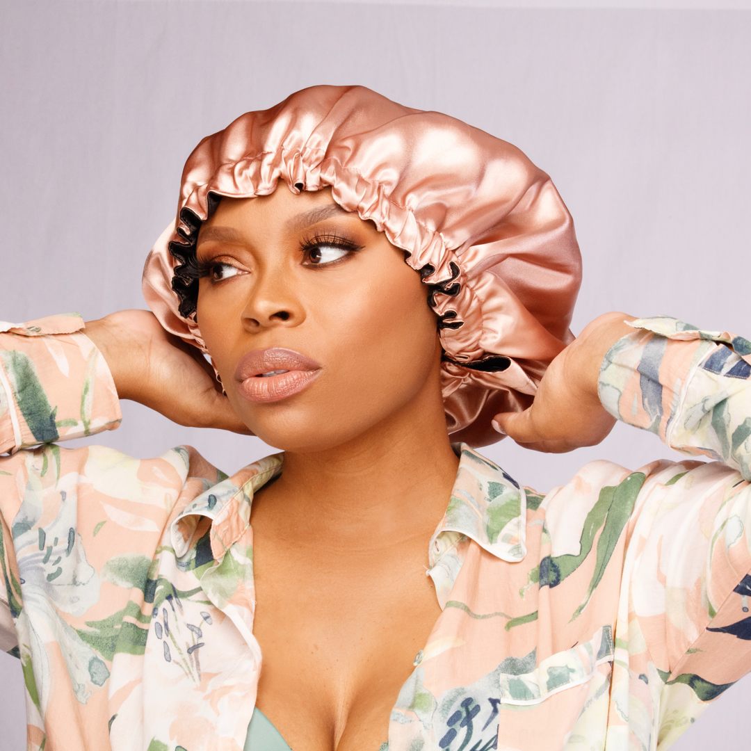The Best Bonnet protects your hair while you are sleeping by eliminating the friction that can lead to damage. It will preserve your style, reduce tangles and breakage, and stop you from looking like you stuck your finger in a socket when you wake up. It is adjustable, so you don't have to worry about it being too tight or too loose. You will never have to worry about it coming off because it stays in place all night!The Best Bonnet is reversible so it can be worn on either side.